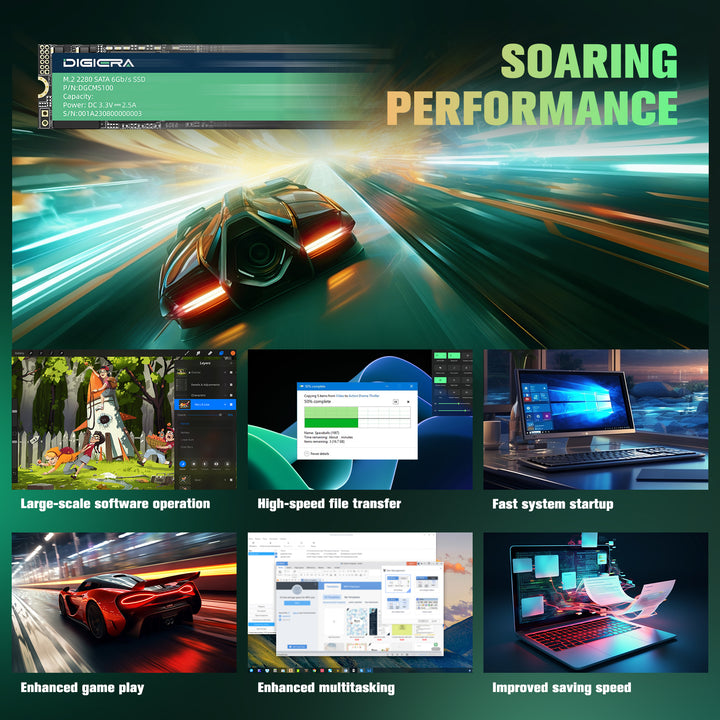 The CMS100 laptop SSD SATA offers high capacity options ranging from 256GB to 1TB, delivering strong read speeds up to 550MB/s and write speeds up to 520MB/s. This solid state drive features a standard M.2 2280 form factor, ideal for laptops, PCs, and compact devices. Built with 3D NAND technology, it ensures excellent durability and reliability over time, with TBW ratings from 160TB to 640TB. A great choice for budget-friendly upgrading from traditional hard drives or slower SATA SSDs.